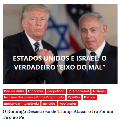 O ataque dos Estados Unidos e Israel contra o Irã é mais do que uma ação militar pontual — trata-se de uma ofensiva estratégica contra o BRICS, que já é uma ameaça concreta à hegemonia ocidental e especialmente, ao poderio econômico dos EUA. Se o dólar deixar de ser moeda de reserva de peso significativo nas trocas comerciais, acaba todo o poderio dos Estados Unidos. O dólar é a principal arma de soft power que ainda sustenta os Estados Unidos como potência – quase – hegemônica no mundo atual. O abandono do dólar pelos países do mundo significaria a irremediável ruína dos Estados Unidos.