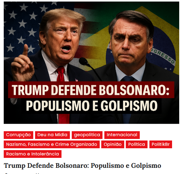 O ataque de Trump ao Brasil usa Bolsonaro como “boi de piranha“. Ele não visa livrar Bolsonaro das garras da justiça, mas sim parte de uma confrontação direta contra o BRICS. Nada mais do que isso. E quem mais perde? O Brasil ou os EUA? Obviamente os EUA. Os preços do café, do suco de laranja, do chocolate e de uma série de outros itens de nossa pauta – deficitária com os EUA – de exportação, vão penalizar o povo americano. O que o Brasil compra, em reciprocidade, dos EUA pode muito bem ser suprido pela China, pela Rússia, pela Espanha, e por outros países. Então, os EUA vão perder duas vezes.
