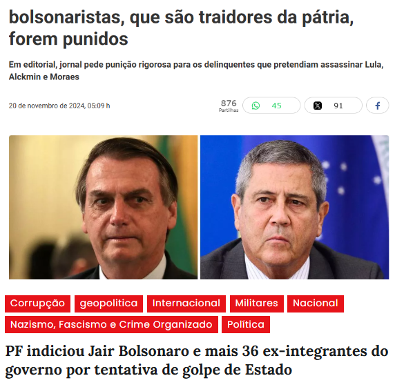 Mas, para além do caso individual do general, essa prisão expõe algo maior: o envolvimento direto de setores das Forças Armadas no projeto golpista bolsonarista. Durante anos, tentou-se vender à população a imagem de que militares seriam “fiadores da democracia”. O que se viu, na prática, foi uma parte deles atuando como fiadores de um projeto autoritário de poder absoluto, violento e antipopular.