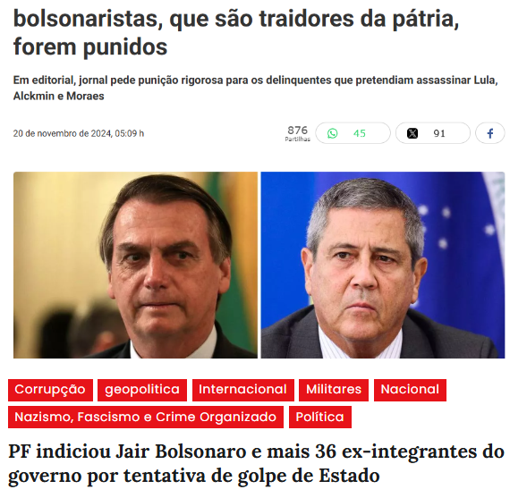 O bolsonarismo, que sempre usou a mentira como escudo, agora enfrenta a realidade dura: a cadeia. E o país, cansado da chantagem golpista, se prepara para virar a página da impunidade de vez.