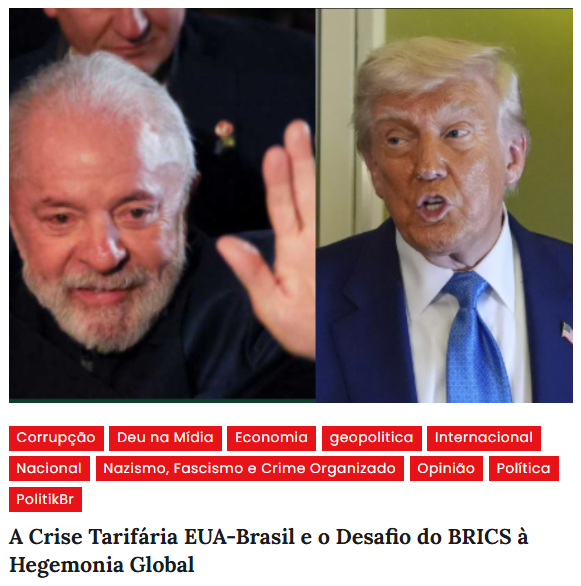 O gesto de Lula foi mais um passo na formatação de uma nova ordem multipolar, em que os principais atores são os países do BRICS e do Sul Global, e que depende de unidade frente ao inimigo comum. No caso do Brasil, as tarifas impostas sob o pretexto farsesco de “perseguição judicial” contra Jair Bolsonaro, revelam a essência da política externa americana: tentar punir quem busca autonomia e ameaçar a hegemonia do decadente Estados Unidos.