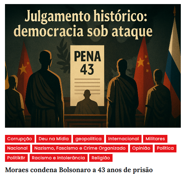 O julgamento, coberto pela mídia internacional, é visto como uma vitória da democracia e um dos momentos que marcam o fim da impunidade política no Brasil. Daqui por diante, não apenas Bolsonaro, mas todos os cúmplices da tentativa de golpe têm seu destino selado: condenação e prisão, com penas que podem chegar a 43 anos, um passo fundamental para resistir a qualquer anistia ou retrocesso.