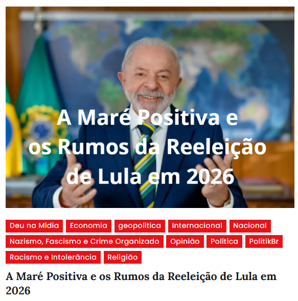 Lula reforça a percepção dos analistas e do mercado de que 2026 poderá repetir o fenômeno de 2022 — uma eleição polarizada, mas desta vez com ampla vantagem a seu favor.