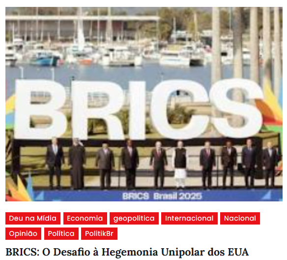 4. Artigo: “Se os EUA perderem a América Latina, perdem a hegemonia global, avaliam analistas” – Notícia Brasil, sobre a importância geopolítica da América Latina.