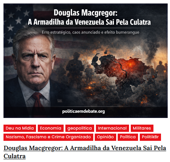 - https://politicaemdebate.org/2026/01/05/douglas-macgregor-a-armadilha-da-venezuela-sai-pela-culatra/