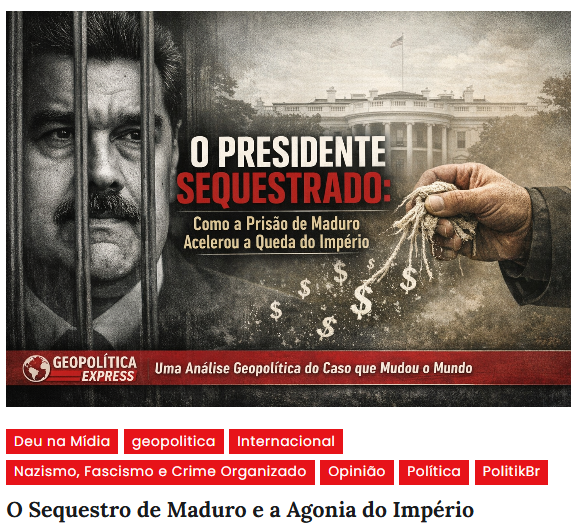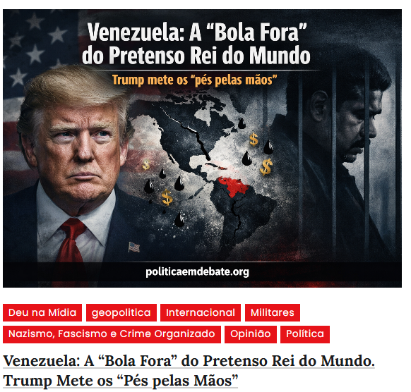 - https://politicaemdebate.org/2026/01/05/venezuela-a-bola-fora-do-pretenso-rei-do-mundo-trump-mete-os-pes-pelas-maos/