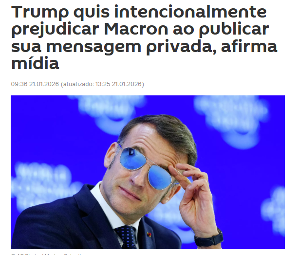 A Sputnik News, citando o The Guardian, diz que Trump quis prejudicar Macron ao divulgar a mensagem. Como poderia ser diferente?