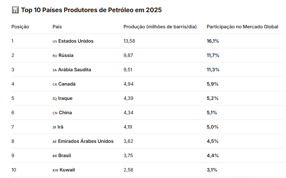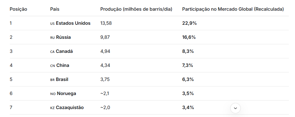 No entanto, em um cenário de ausência absoluta do petróleo e do gás produzido pelos países do Oriente Médio, fruto, por exemplo, de um ataque nuclear de Israel ao Irã, e tendo uma resposta retaliatória também nuclear, tendo como consequência um “inverno nuclear regional”, o ranking de produtores seria como a figura abaixo.
