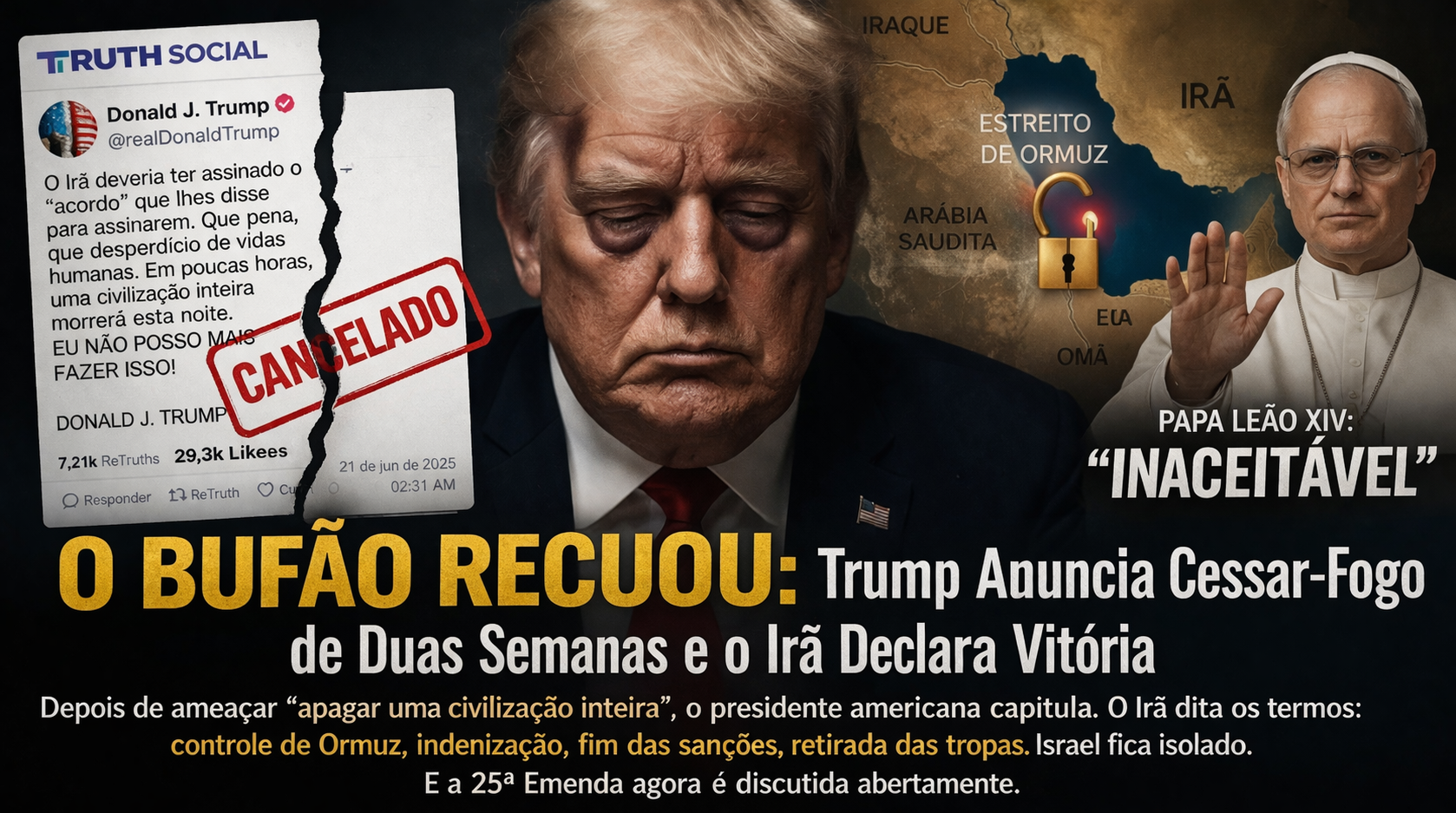 - A DUPLA FACE DE TRUMP — Já documentamos como Trump ameaça publicamente (“apagar uma civilização inteira”) enquanto os seus negociadores recuam a portas fechadas. A análise de Blokhin confirma que essa dualidade é uma estratégia deliberada para “salvar a face”.