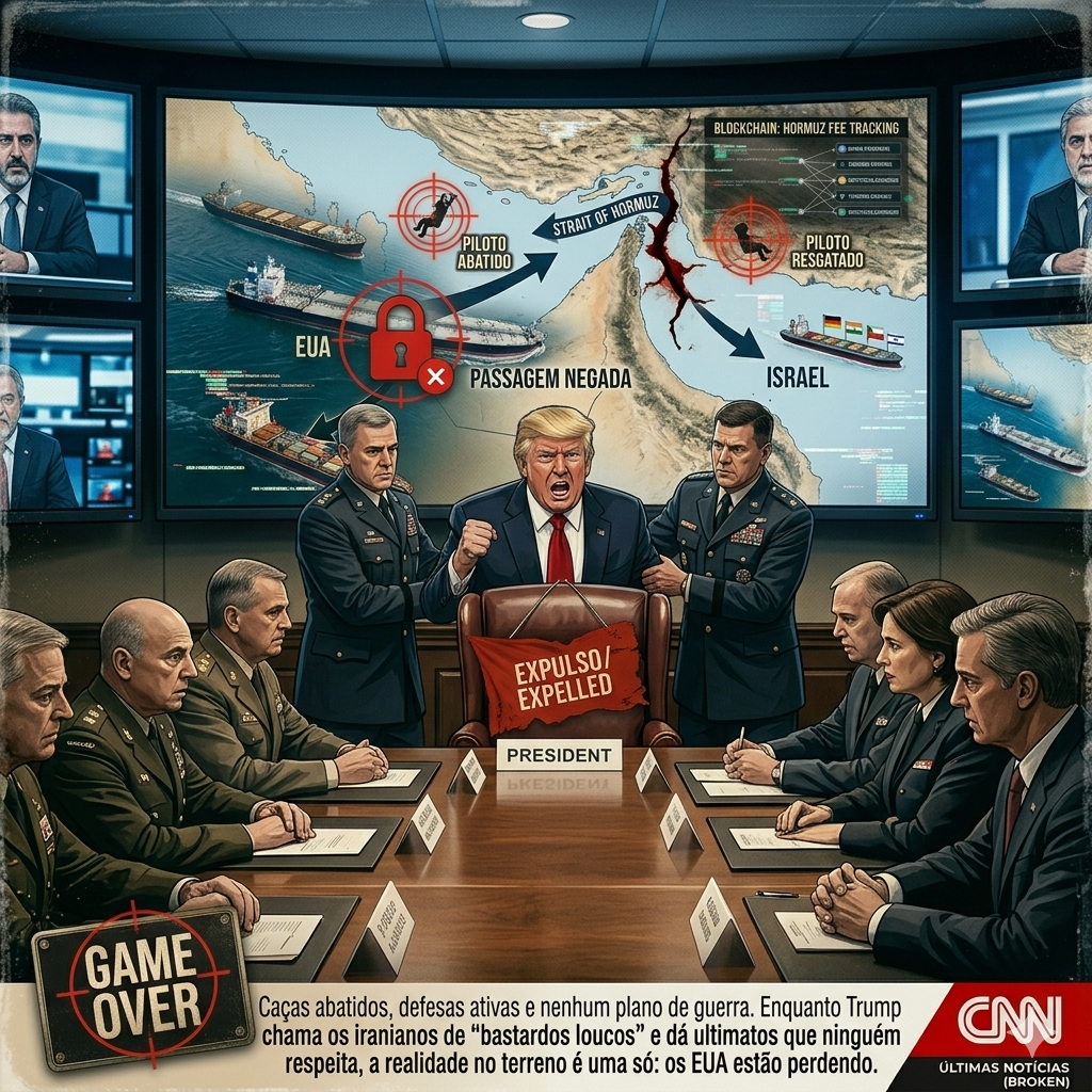 O mesmo presidente que ameaçou “apagar uma civilização inteira” e que se gaba de ser o “comandante-em-chefe mais forte da história” foi expulso da Sala de Situação da Casa Branca por seus próprios assessores militares. O motivo? Durante a operação de resgate de dois pilotos americanos abatidos pelo Irã — uma operação que custou perdas recordes de aeronaves e uma retirada caótica sob fogo dos iranianos — Trump estava tão alterado, gritando e reclamando que os europeus “não estavam ajudando”, que os assessores o removeram do local onde as decisões críticas estavam sendo tomadas.